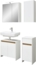 Pelipal 'Quickset 100' Badmöbel-Set vereint modernes Design mit natürlicher Eleganz. Das Set umfasst einen Waschbeckenunterschrank mit zwei Drehtüren und Siphonausschnitt, einen Spiegelschrank mit Bügelleuchte, einen wandhängenden Hängeschrank sowie einen kompakten Unterschrank. Die grifflosen Fronten und die strukturierte Oberfläche in Weiß Miniperl, kombiniert mit Riviera Eiche NB, sorgen für eine harmonische Optik. Robustes MDF-Material und pflegeleichte Oberflächen garantieren Langlebigkeit und Stabilität.