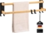 Der eluno Handtuchständer aus schwarzem Metall und Bambus kombiniert modernes Design mit praktischer Funktionalität. Mit zwei versetzten Handtuchstangen von je 60 cm Breite bietet er ausreichend Platz für mehrere Handtücher. Sechs praktische Haken ermöglichen die Aufbewahrung von Waschlappen und Duschzubehör. Die Montage ist flexibel: entweder selbstklebend oder mit Schrauben. Die Abmessungen betragen ca. 64,5 x 18 x 12 cm (B/H/T).