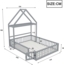 Dieses vielseitige Spielhausbett im großzügigen Format von 140x200 cm vereint kreatives Design mit herausragender Funktionalität. Die massive Kiefernholzkonstruktion bietet mit einer Tragfähigkeit von 200 kg und durchgehenden Schutzgittern maximale Sicherheit. Das abnehmbare Dach ermöglicht die Nutzung als Spielhaus oder gemütliche Leseecke. Integrierte Elemente wie ein Bücherregal und eine Kleiderstange fördern die Selbstständigkeit. Mit 15 robusten Latten sorgt das Bett für kindgerechten Komfort und Stabilität.