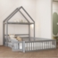Spielhausbett Mit Abnehmbarem Dach 140x200 Kiefer Massivholz Bodenbett Mit Tür Bücherregal Kleiderstange Lattenrost 200kg Tragkraft Montessori Spielbett Großes Kinderbett Bild 1