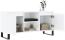 Der TV-Schrank in Hochglanz-Weiß ist eine stilvolle und praktische Ergänzung für Ihr Wohn- oder Schlafzimmer. Hergestellt aus robustem Holzwerkstoff, bietet er eine glatte Oberfläche sowie Festigkeit und Stabilität. Mit 4 Fächern bietet er ausreichend Stauraum für Bücher, Zeitschriften und Elektronikgeräte. Die stabile Tischplatte eignet sich ideal für Dekorationsgegenstände. Die Eisenbeine sorgen für zusätzliche Robustheit. Bitte beachten Sie, dass das Produkt mit der mitgelieferten Wandhalterung gesichert werden sollte, um ein Umkippen zu vermeiden.