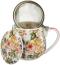 DUO FLORAL Fassbecher 430 ml BLANCA mit Teesieb, New Bone China Porzellan