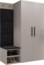 Garderoben-Set Mapreni IV in der eleganten Farbgebung Cashmere und Manila 18 bietet eine praktische und stilvolle Lösung für Ihre Garderobe. Das Set umfasst einen Drehtürenschrank, einen Schuhschrank, ein Kleiderhakenbrett und gepolsterte Wandpaneele. Alle Möbelstücke sind aus robusten Materialien gefertigt und bieten ausreichend Stauraum für Kleidung und Schuhe.
