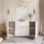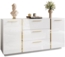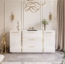 Die Lookway ONYX-Kommode vereint Minimalismus und Eleganz in einem modernen Design. Mit einer Breite von 158 cm, einer Höhe von 81 cm und einer Tiefe von 41,3 cm bietet sie ausreichend Stauraum für Ihre Accessoires und Dokumente. Die hochglänzenden Fronten in Weiß oder Schwarz und die goldenen Akzente verleihen Ihrem Wohnzimmer einen luxuriösen Touch. Der Korpus aus robuster, matter laminierter Platte sorgt für Langlebigkeit und Stabilität.