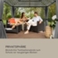 Für eine geschützte Atmosphäre sind in diesem Set schon die Seitenwände für den Pavillon enthalten. Diese sind aus einem besonders robustem Material gefertigt und beschichtet, sodass Regen und Nässe abperlen. Auch der Wind und ungewollte Blicke kommen nicht in deine Wohlfühl-Oase. Die Seitenwände kannst du komfortabel auf- und zuschieben und an den Pfosten optisch ansprechend mit Schlaufen befestigen.