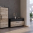 Der Wohnzimmerschrank „Berno“ in Schwarz/Sandeiche kombiniert modernes Design mit funktionalem Stauraum. Mit den Maßen 70,8 x 38,9 x 35,3 cm (BxHxT) bietet er ausreichend Platz für Akten, Ordner, Bücher oder Dekoobjekte. Die stabile Verarbeitung aus 16 mm Spanplatte und Kunststoff sorgt für Langlebigkeit und ein ansprechendes Erscheinungsbild. Ideal für verschiedene Wohnkonzepte, ergänzt dieser Schrank Ihr Wohnzimmer auf praktische Weise.