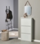 Der Schuhkipper Bert ist die perfekte Lösung für Ordnung und Stil in Ihrem Eingangsbereich. Mit einem schlanken Design und einer platzsparenden Tiefe von nur 16 cm passt er mühelos in schmale Räume. Gefertigt aus hochwertigem Metall und in klassischem Weiß lackiert, ist er robust, pflegeleicht und langlebig. Mit drei Klappen bietet er Stauraum für bis zu sechs Paar Schuhe und fügt sich harmonisch in verschiedene Einrichtungsstile ein.