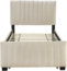 Das Polsterbett ist ein elegantes Einzelbett mit Ausziehbett, das aus hautfreundlichem Samtstoff in Beige gefertigt ist. Mit den Gesamtabmessungen von 203 x 100 x 107 cm und einer Liegefläche von 90x190 cm bietet es sowohl Komfort als auch Funktionalität. Die stabile Tragestruktur gewährleistet Sicherheit, während das ausziehbare Rollbett bei Bedarf zusätzlichen Schlafplatz bietet.