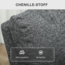 - Material: Stoffbezug (100 % Polyester), Schaumstoff, Metall