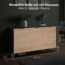 Die MDF-Front in Eichenoptik setzt einen natürlichen Akzent, während Ober-, Unter- und Seitenplatten in Schwarz einen stilvollen Kontrast schaffen. Dank der melaminbeschichteten Oberfläche ist die Kommode pflegeleicht und resistent gegenüber Kratzern und Feuchtigkeit.