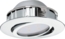 Hochvolt LED Einbauleuchte Pineda in chrom mit einem Durchmesser von 8,4 cm und einer Einbautiefe von 4 cm. Diese dimmbare Leuchte bietet warm-weißes Licht (3000 K) und eine Lichtstärke von 500 Lumen. Dank der neuesten LED Hochvolt Technologie ist kein Trafo erforderlich, was die Installation vereinfacht. Die Leuchte ist aus verchromtem Kunststoff gefertigt und sorgt für eine geringe Wärmeentwicklung, was die Sicherheit erhöht.