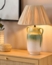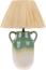 Mehrfarbige Keramik-Tischleuchte in moderner Vasenform mit kegelförmigem Papierschirm. Mit dieser fabelhaften Leuchte lassen Sie den Boho-Look bei sich Zuhause einziehen und sorgen dabei für Gemütlichkeit in Ihren Wohnräumen. Der stabile Lampenfuß besteht aus pflegeleichter Keramik und besticht sowohl mit seiner angesagten Vasenform als auch mit einem prächtigen Farbverlauf in einem hellen Grün- und Weißton. Der Papierschirm ist in einem hellen Naturton gehalten und wirft ein sanftes Licht, das Ihren Raum in ein Reich heiterer Raffinesse verwandelt. Dank langem Kabel mit Schalter kann die Nachttischlampe fast überall angeschlossen werden. Um die natürliche Schönheit des Modells zu unterstreichen, ist das Kabel zusätzlich mit Nutzhanf umflochten.