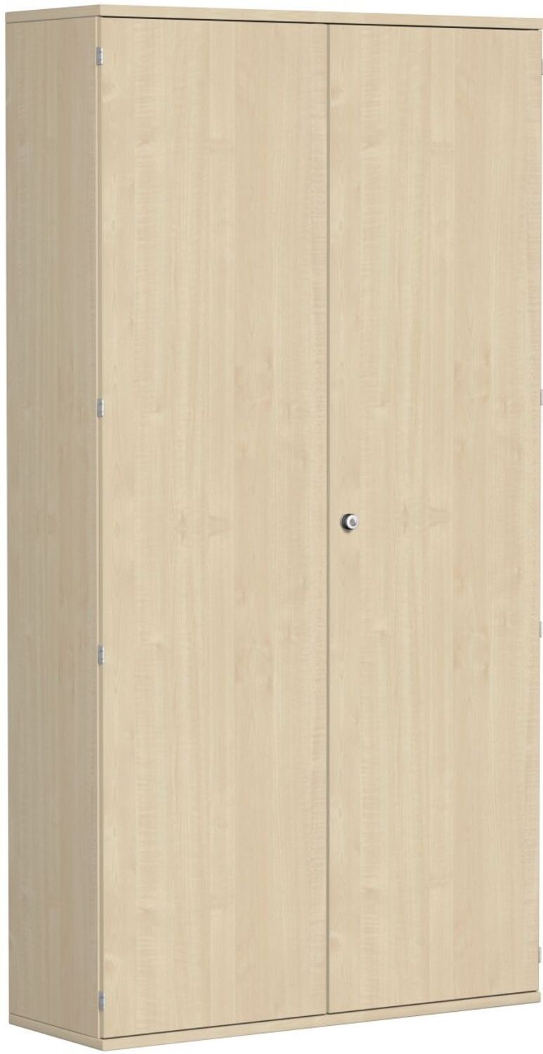 Garderobenschrank mit ausziehbarem Garderobenhalter, 120 x 42 x 230 cm, Ahorn. Schranksystem Pro Technische Daten: Korpus: Dreischicht-Feinspanplatte mit Melaminharz-Beschichtung nach DIN 68765. Durchlaufende Ober- und Unterböden in 25 mm, Seitenelemente in 19 mm und Sichtrückwand in 8 mm Materialstärke; Robuste Metallscharniere; 2 Schlüssel; Nutztiefe 370 mm; 8 mm starke, stabile eingenutete Sichtrückwand für das Aufstellen frei im Raum Einlegeböden: Alle Einlegeböden sind aus Dreischicht-Feinspanplatte. Einlegeböden im Raster von 32 mm höheneinstellbar; gegen Verrutschen gesichert. Flügeltüren: Drehtüren aus Holz bieten einen Öffnungswinkel von 270°. Die Holztüren sind mit einem Drehstangenschloss mit 3-Punkt-Verriegelung ausgestattet. Satinierte, rahmenlose Glastüren mit Öffnungswinkel von 110°. Sockel: Optional, zusätzlich zu bestellen. 50 mm Höhe, als untere Abschluss mit stabilen Justierfüßen. Farbe in Silber oder Schwarz Lieferung: Die Lieferung aller Schränke und Regale erfolgt fertig montiert. Der Querrollladeneckschrank kann nur vor Ort montiert werden. Schränke enthalten weder Sockel noch Standfüße. Diese müssen separat bestellt werden und sind vor Ort zu montieren. Maße: 1000 x 425 x 2304 mm Gewicht in KG: 114