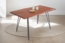 Trendiger Esszimmertisch Celia, Akazienholz nussbaumfarben + massiv, echte Baumkante, silbernes Vierfuß-Gestell, 120 x 80 cm : Stabiles Vierfußgestell – Die lackierten Tischbeine in Vierfuß-Form aus Metall bilden einen spannenden Kontrast zur massiven Holzplatte und sorgen für einen stabilen Stand. Die höhenverstellbaren Kunststofffüßchen schützen den Boden vor Kratzern und gleichen Unebenheiten aus. Natur Pur – Die massive Tischplatte aus hochwertigem Akazienholz ist langlebig und dezent lackiert. Zur Versiegelung verwenden wir nur umweltfreundlichen Lack, der die Oberfläche nicht zu 100 % versiegelt und so die charakteristische Haptik des Holzes erhält. Das sorgt für ein gutes Raumklima. Vielseitig kombinierbar - Dieser hochwertige und in liebevoller Handarbeit gefertigte Esstisch ist durch sein zeitloses und schlichtes Design vielfältig einsetzbar und passt somit in jede Küche oder Esszimmer. Problemlos kombinierbar mit Möbel im modernen oder dem Industrial-Stil. Stabiles Akazienholz – Die 26 mm starken sowie massiven Holzbohlen aus Akazienholz sind langlebig und robust. Akazienholz ist gelb bis goldbraun und ein hartes, widerstandsfähiges Holz. Die unterschiedlichen Maserungen, Farbnuancen und die echte Baumkante verleihen dem Tisch seinen einzigartigen Charakter. Pflegeleicht – Die Oberfläche lässt sich leicht reinigen und pflegen. Verschmutzungen können mit einem mäßig feuchten Tuch problemlos entfernt werden. Regelmäßige Pflege erhält die natürliche Frische und die lebendige Ausstrahlung des Möbelstücks. Maßangaben: : Gesamtlänge: ca. 120 cm Gesamtbreite: ca. 80 cm Gesamthöhe: ca. 77 cm Materialstärke: ca. 2,6 cm: :.Der Tisch wird teilmontiert geliefert, nur das Gestell muss noch montiert werden.