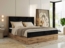 Doppelbett, Boxspringbett mit Bettkästen, Multipocket-Matratze und Topper, Set mit Kopfteil, Eiche Wotan Holzrahmen - WOOD CLASSIC - 180 x 200 cm - Schwarz Cord - H3