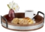 Ein praktisches Mangoholz Tablett mit Metallrand (Artikelnummer: 10047411). Das Tablett bietet Platz für Speisen und Getränke und ist aus hochwertigem Mangoholz gefertigt. Der silberne Metallrand verleiht dem Tablett eine dekorative Note. Mit den Griffen aus schwarzem Eisen ist das Serviertablett einfach zu tragen und zu platzieren. Maße: 9 x 36 x 35 cm, Gewicht: 1,6 kg.