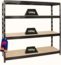 Das PROREGAL Profi Schwerlastregal Rhino EXTRA BREIT in Schwarz bietet Ihnen eine beeindruckende Traglast von bis zu 500 kg pro Ebene und eine Gesamttraglast von bis zu 2000 kg. Mit den Abmessungen von 180 x 200 x 60 cm und 8 mm dicken Spanplatten-Ebenen ist es ideal für den professionellen Einsatz in Werkstätten, Lägern und Garagen. Der unkomplizierte Aufbau erfolgt in nur 15-20 Minuten mit einem Gummihammer.