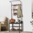 BAKAJI Garderobenständer mit 9 Haken aus Metall mit Schuhbank, 2 Ablagen, Sitzfläche aus MDF, dunklem Holz, modernes Industrie-Design, Größe 73 x 34 x 183 cm