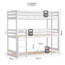 Das moderne Etagenbett für Kinder ist mit 3 Liegeflächen in 90x200 cm und mit einer Leiter vorn und einer an der Seite ausgestattet. Das Kinderhochbett kann als ideale Schlafmöglichkeit oder Spielbett im Kinderzimmer bzw. Jugendzimmer oder auch für spontanen Besuch im Gästezimmer genutzt werden. Das platzsparende und multifunktionale Dreifach-Etagenbett für bis zu 3 Personen ist daher besonders gut für Familien mit mehreren Kindern geeignet. Das aus Kieferholz gefertigte Hochbett ist deckend weiß lackiert. Die einzelnen Etagen des Kinderbetts sind über zwei Leitern zu erreichen. Je nach Raumkonstellation können die Leitern links oder rechts montiert werden. Das Dreifachbett lässt sich nicht in mehrere Einzelbetten umbauen.