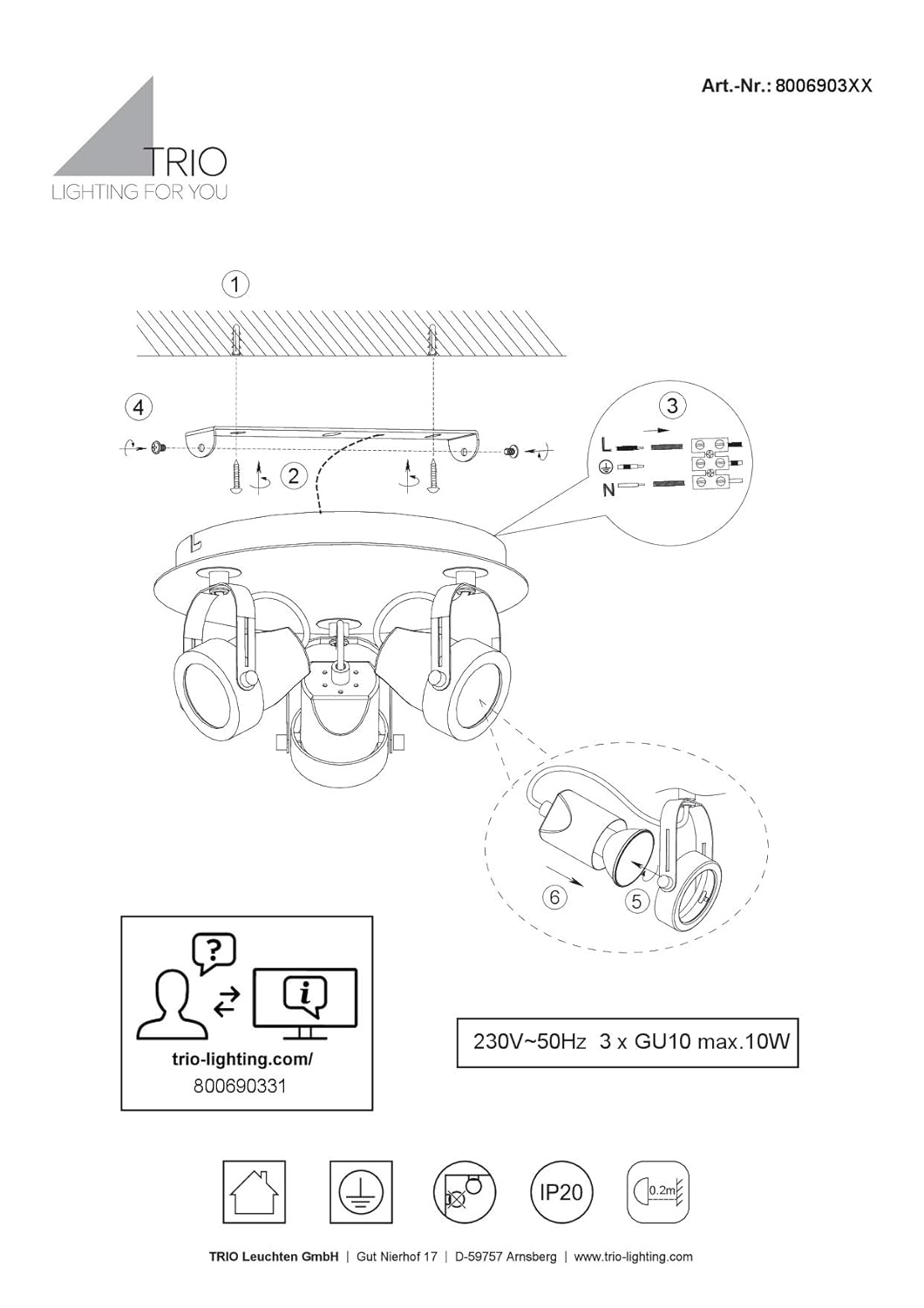 - Empfohlenes Leuchtmittel: 3x GU10 max. 10 Watt