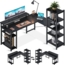 ODK Gamingtisch L Form Gaming Tisch mit Regal, Steckdosen&USB, 155×140cm Bild 1