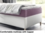 Unten: Bettkasten mit Federmechanismus und Textilgriffe, Holzrahmen mit Möbelplatte, HDF und Schaumstoff