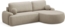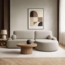 Die weichen, geschwungenen Konturen verleihen dem Sofa eine harmonische und leichte Optik, die es deutlich von klassischen, eckigen Modellen abhebt. Besonders ins Auge fällt die abgerundete Ottomane, die nicht nur ein Blickfang ist, sondern auch maximalen Komfort bietet – ideal zum Füßehochlegen oder als zusätzliche Sitzgelegenheit. Das Ecksofa lädt zum Entspannen im Sitzen, Halbliegen oder Liegen ein.