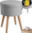 Der tectake 800836 Sitzhocker Yara vereint stilvolles Design mit praktischer Funktionalität. Mit einem Durchmesser von ca. 35,5 cm und einer Höhe von ca. 45,5 cm bietet er nicht nur eine bequeme Sitzgelegenheit, sondern auch ein praktisches Staufach. Der abnehmbare Deckel ermöglicht einfachen Zugang zu Ihrem verstauten Zubehör. Die robusten Buchenholzbeine mit Filzgleitern schützen Ihren Boden und sorgen für einen sicheren Stand. Der Hocker ist bis zu 300 kg belastbar und wiegt ca. 3,8 kg.