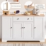 Dieses moderne Sideboard mit einer Breite von 138 cm vereint zeitgemäßes Design und durchdachte Funktionalität. Das Natural/Weiße Finish und die klaren Linien im Euro-Stil machen es zu einem eleganten Blickfang in Küche, Esszimmer oder Wohnzimmer. Gefertigt aus MDF, bietet es eine pflegeleichte Oberfläche und ausreichend Stauraum durch eine geräumige Schublade, ein Doppeltürfach und zwei seitliche Schränke mit verstellbaren Einlegeböden.