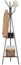 | Vintage-AblagenDer schwarze Rahmen und die rustikalen Holzplatten bilden eine perfekte Kombination. Somit ist der Garderobenständer nicht nur praktisch im Alltag, sondern schmückt zudem Ihren Wohnraum. | Auf drei BeinenDie Garderobe steht auf drei im Dreieck angeordneten Beinen, was für eine gute Stabilität sorgt; die unteren Fußkappen schützen Ihren Boden vor Kratzern. | Haken mit glatter OberflächeDank der abgerundeten Hakenenden wird Ihre Kleidung beim Auf-/Abhängen vor Beschädigungen geschützt. |