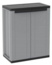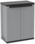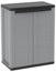 Toller Beistellschrank aus robustem Kunststoff (PP) in der Farbkombination aus grauem Korpus und schwarzen Accessoires. Der Kunststoffschrank ist insbesondere gut geeignet für den Einsatz in Haushalt, Keller und Garage. Auch in überdachten und Wind-geschützten Außenbereichen kann er Einsatz finden. Die Montage ist dank simplem Stecksystem und übersichtlicher Aufbauanleitung binnen weniger Minuten vollzogen. Der Haushaltsschrank ist ausgestattet mit einem höhenverstellbaren Einlegeboden. Der Einlegeboden ist belastbar mit bis zu 20 kg bei gleichmäßiger Verteilung der Traglast. Die Optik des Schranks ist dezent und schlicht gehalten. So passt sich der Kunststoffschrank optisch in nahezu jeden Bereich ein und wirkt dezent und nicht aufdringlich. Die beiden Türen verfügen ferner über zwei Griffe, die mittels einer Öffnung versehen ist und mit Hilfe derer die Türen mittels Gabelschloss verschlossen werden können. Das Schloss ist im Lieferumfang nicht inbegriffen. Das robuste Kunststoffmaterial ist einfach in der Pflege. Daher lässt es sich auch prima in Räumen einsetzen, die eine hohe Luftfeuchtigkeit aufweisen oder in denen es auch einmal nass werden kann, wie z.B. Kellerräume, u.a. Mit einem haushaltsüblichen Reiniger und/ oder einem Schwamm mit etwas Wasser haben Sie den Schrank jederzeit im Handumdrehen gereinigt. Durch das schnörkellose Design setzt sich auch kein Staub und Dreck an den Fronten ab.