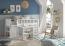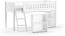 Das halbhohe Funktionsbett aus der Serie Scott, mit einer Liegefläche von 90 x 200 cm und schräg angestellter Leiter, ist ideal zum Spielen und Schlafen. Das Set besteht aus dem Bett, dem Schreibtisch und dem Regal. Ein Abenteuerspielplatz im Kinderzimmer. Der Artikel ist aus massiver Kiefer gefertigt und die Oberfläche ist weiß lackiert. Ein Rolllattenrost mit 15 Leisten (ca. B: 70 x H: 1,7 mm) ist bereits im Lieferumfang enthalten. Der Absturzschutz gibt zusätzlich Sicherheit und ist vorne in Sprossenoptik, nach hinten besteht er aus zwei Paneelen. Der Abstand vom Boden bis Oberkante Absturzschutz sind ca. 114 cm, die Einstiegshöhe bis Oberkante Bettseite ist ca. 81,5 cm und die Höhe von der Oberkante der Bettseite bis Oberkante Absturzschutz ca. 32 cm. Das Kopf- und Fußteil hat ein geschlossenes Paneel, außen mit einer gefrästen Ornamentik. Nach innen hin ist das Paneel glatt. Die Leiter wird schräg angestellt und kann rechts oder links verbaut werden, sie hat ca. 35 cm breite Trittstufen die sicheres Hinauf- und Hinabsteigen ermöglichen. Zusätzlich hat die Leiter Grifflöcher, an denen man sich prima festhalten kann. Der Raum unter der Liegefläche, vom Boden bis Unterkante Bettseite ist ca. 72,5 cm hoch. Er wird für die funktionellen Beimöbel genutzt. Der Schreibtisch wird fest unter dem Bett montiert. Er hat vorne Rollen und kann dadurch einfach nach vorne ausgezogen werden. Die Maße sind B: 68 x H: 72 x T: 94 cm. Besonders praktisch ist das Regal an der Vorderseite mit einem festen Boden. Es bietet zusätzlich Ablagemöglichkeiten. Das Innenmaß ist ca.: B: 62 x H: 32 x T: 31 cm. Zudem gehört das Regal unter dem Bett zum Lieferumfang. Es hat einen festen Boden. Das Fachinnenmaß ist ca.: B: 81 x H: 32 x T: 39 cm. Es wird einfach unter das Bett geschoben und bietet viel Stauraum. Benötigte Stellfläche ca. B: 210 x H: 114 cm. Tiefe 106 cm + ca. 94 cm für den ausgezogenen Schreibtisch. Die hochwertige Verarbeitung und sehr gute Stabilität zeichnen dieses Bett aus. Die Pfostenstärke ist ca. 55,5 x 55,5 mm. Max. Matratzenhöhe ca. 20 cm. Für Kinder unter 6 Jahren nicht geeignet. Die Ware ist zerlegt, zur einfachen Selbstmontage. Die Matratze, Kissen und Dekoration gehören nicht zum Lieferumfang. FSC®-zertifiziert und nach EN 747-2:2012+A1(2015) gebaut. Das Bett an sich ist ca. B: 207,6 x T: 97,6 cm, die Leiter benötigt eine Tiefe von ca. 37,1 cm. Benötigte Stellfläche ca. B: 207,6 x H: 114 x T: 134,7 cm.