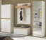 Details: Garderobe Center GE6289-21 Garderobenkombination 4-teilig Front und Korpus weiß Absetzung Wotan Eiche Dekor Gesamtmaß B/H/T ca.: 265 /200/40 cm bei 10 cm Typenabstand bestehend aus: Schuhschrank B/H/T ca.: 85 /195/35 cm 4 Türen 6 breite Einlegeböden / 8 geschlossene Fächer Einlegeböden höhenverstellbar Garderobenpaneel B/H/T ca.: 100 /135/25 cm 1 Hutablage 1 Kleiderstange 3 Kleiderhaken am Paneel Garderobe Sitzbank B/H/T ca.: 100/45/40 cm 1 Klappe 2 Böden / 4 geschlossene Fächer Sitzkissen für Sitzbank Bezug: 100% Polyester Höhe ca. 5 cm Garderobenschrank B/H/T ca.: 60 /200/40 cm 1 Tür mit Spiegel 2 feste Böden 1 ausziehbare Kleiderstange 3 geschlossene Fächer Tür links oder rechts zu befestigen Qualität: Elegante Garderobenkombination für den modernen Flur Front und Korpus mit strapazierfähiger Melaminbeschichtung Tür mit Spiegel kann links oder rechts öffnend befestigt werden, dadurch auch spiegelverkehrt oder einzeln stellbar Griffloses Öffnen durch innenliegende Blende Kleiderstange und Haken in Metall schwarz Metallscharniere und Metallschienen kugelgelagert Schuhschrank mit Lochreihe für flexible Inneneinteilung der Einlegeböden FSC®-zertifizierter Holzwerkstoff, aus kontrolliert nachhaltiger Forstwirtschaft Pflegeleicht durch glatte Oberflächen, einfach feucht abwischen Das Garderobenprogramm Center bietet eine Vielzahl von Einzelmöbeln mit verschiedenen Stell- und Kombinationsmöglichkeiten Lieferumfang: Ihre Garderobe wird Ihnen bis in das gewünschte Zimmer getragen Zerlegt/Selbstmontage, inkl. bebilderte Aufbauanleitung Montage- und Befestigungsmaterial Dekoration, Beimöbel und Elektrogeräte sind nicht enthalten