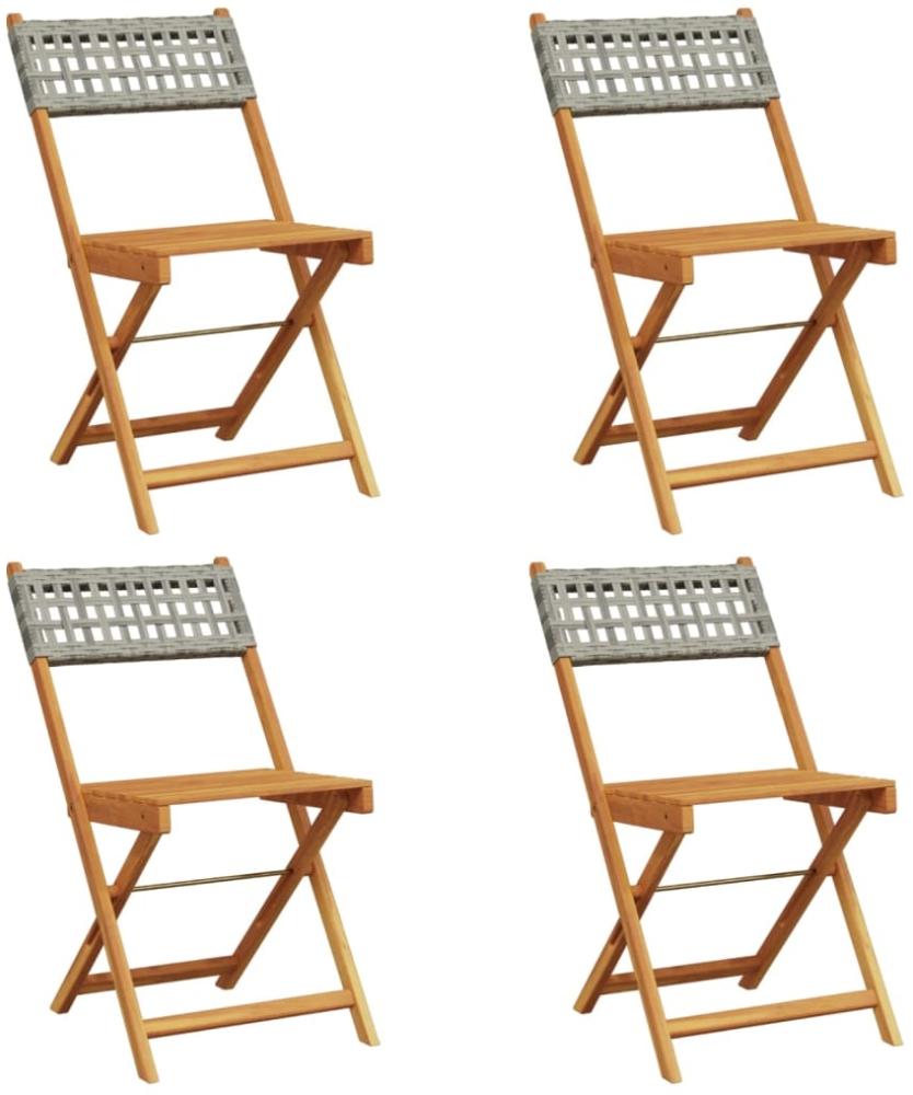vidaXL Gartenstühle 4 Stk. Klappbar Grau Poly Rattan & Massivholz 3214595