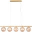 Die Pendelleuchte HONEY begeistert mit ihrem 5-flammigen Retro-Design in Gold und bernsteinfarbenen Glaskugeln. Mit einer Breite von 100 cm und einer Gesamthöhe von 166 cm wird sie zum stilvollen Blickfang in Ihrem Wohnbereich. Die fünf G9 Fassungen bieten Platz für Leuchtmittel mit maximal je 40 Watt und schaffen eine gemütliche Atmosphäre. Ideal über dem Esstisch oder in hohen Räumen, vereint sie nostalgischen Charme mit luxuriösem Glanz.