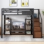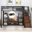 Multifunktionales Hochbett in der Größe 140x200 cm aus einer stabilen Metall-Holz-Kombination. Das platzsparende Design bietet unter der Liegefläche zusätzlichen Stauraum und einen integrierten TV-Ständer sowie eine Steckdose für bequeme Mediennutzung. Die Kombination aus robustem Metallrahmen und warmen Holzakzenten sorgt für Stabilität und eine ansprechende Optik. Ideal für kleine Räume, Studentenwohnheime oder Wohnungen.