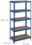 Das Schwerlastregal in Blau bietet Ihnen großzügigen Stauraum für schwere Gegenstände wie Reifen, Werkzeuge und Maschinen. Mit 5 variablen Böden aus MDF und Stahl hat es eine Gesamttraglast von 1325 kg. Das Regal lässt sich einfach aufbauen und kann bei Bedarf in zwei separate Regale geteilt werden. Maße: 180 x 90 x 45 cm.
