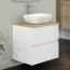 Montierte Möbel. Hergestellt in Spanien. Badezimmermöbel-Set bestehend aus: Hängeschrank mit Holzoberteil, Keramikwaschbecken und Spiegel mit seitlichen Holzprofilen. Mattweiß Erhältlich in zwei Ausführungen und verschiedenen Größen. Die Maße des Badmöbels betragen 60 cm (L) x 54,5 cm (H) x 45 cm (T). Maße Top Holz: 61 cm (L) x 1,6 cm (H) x 46 cm (T) Maße des Waschbeckens: 45,5 cm (L) x 33 cm (T) Maße Spiegel: 60 cm (L) x 80 cm (H) Die Aufteilung des Möbelstücks besteht aus 2 Schubladen, mit gedämpfter Hettich-Führung, für einen geräuscharmen Verschluss, Holzschublade mit Textiloberfläche, sehr sauber Ein modernes Designmöbel, das Illusion erzeugt, bringt Eleganz und Ordnung in Ihr Bad. Diese Duo-Familie präsentiert sich in zwei Ausführungen und verschiedenen Größen. Finish weiß matt und natur. FSC-zertifiziert, ist unser Engagement für die Gesellschaft, bescheinigt, dass die verwendeten Rohstoffe in nachhaltigen Wäldern gewonnen wurden, die das zukünftige Überleben des Waldes sichern und die Qualität ihrer Flora und Fauna verbessern. Das Möbelstück wird komplett montiert geliefert und wird mit einer Montageanleitung geliefert. Ohne Wasserhahn und Siphon.