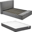 Vente-unique - Bett mit Bettkasten & Bank + Matratze - 160 x 200 cm - Stoff - Grau - DOUINO