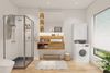 'Vist' ist aus hochwertigen und robusten Holzmaterialien gefertigt, die dem Schrank eine hohe Stabilität schenken und für eine lange Lebensdauer sorgen. Dank seines modernen Designs in der eleganten Farbe Weiß kann sich der Waschmaschinenschrank nahtlos in jeden Waschraum einfügen und verleiht dem Ambiente eine stilvolle Note. Seine glatte Oberfläche lässt sich zudem mühelos reinigen, sodass der Schrank leicht zu pflegen ist.