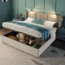 Dieses Polsterbett mit einer Liegefläche von 160x200 cm vereint elegantes Design und praktische Funktionen. Der beige Leinenbezug sorgt für eine warme Ausstrahlung, während das hohe Kopfteil eine angenehme Rückenstütze bietet. Eine flexibel ausrichtbare Leselampe und eine integrierte USB-Ladefunktion am Kopfende ermöglichen komfortables Lesen und Laden von Geräten. Der große Bettkasten mit Hydraulikzylinder bietet viel Stauraum und schützt dank Oxford-Stoff an der Unterseite vor Staub.