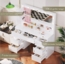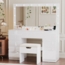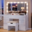 Der HOMALL Schminktisch vereint Funktionalität und elegantes Design. Mit den Maßen 120 x 40 x 140 cm bietet er ausreichend Platz für Ihre Kosmetikartikel und Schmuck. Der große Spiegel (105 cm) ist von 12 LED-Leuchten umgeben, die in drei Lichtmodi einstellbar sind. Sie profitieren von 7 Schubladen für eine optimale Aufbewahrung und einer integrierten Ladestation mit 2 Steckdosen sowie USB-Anschluss.