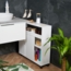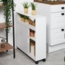 Der Nischenschrank mit offenen Ablagen ist die ideale Lösung für Badezimmer und Küche, um in engen Nischen zusätzlichen Stauraum zu schaffen. Mit 2 offenen Fächern und 2 Schrankfächern, die durch einen Einlegeboden ergänzt werden, bietet er ausreichend Platz für Kosmetika, Putzmittel und Küchenutensilien. Dank der 4 Rollen lässt sich der Schrank mühelos bewegen. Das elegante Design in Weiß fügt sich harmonisch in jede Umgebung ein.