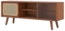 Ein moderner TV-Schrank, der Funktionalität und Stil vereint. Mit einer Gesamtgröße von 120,5 x 31 x 45,5 cm bietet er Platz für die meisten Flachbildfernseher und ausreichend Stauraum für Mediengeräte. Die mittlere Ablage ist höhenverstellbar und verfügt über ein Kabelführungsloch. Hergestellt aus hochwertigen Materialien wie Bambus und gehärtetem Glas, ist dieser Schrank sowohl robust als auch ästhetisch ansprechend.