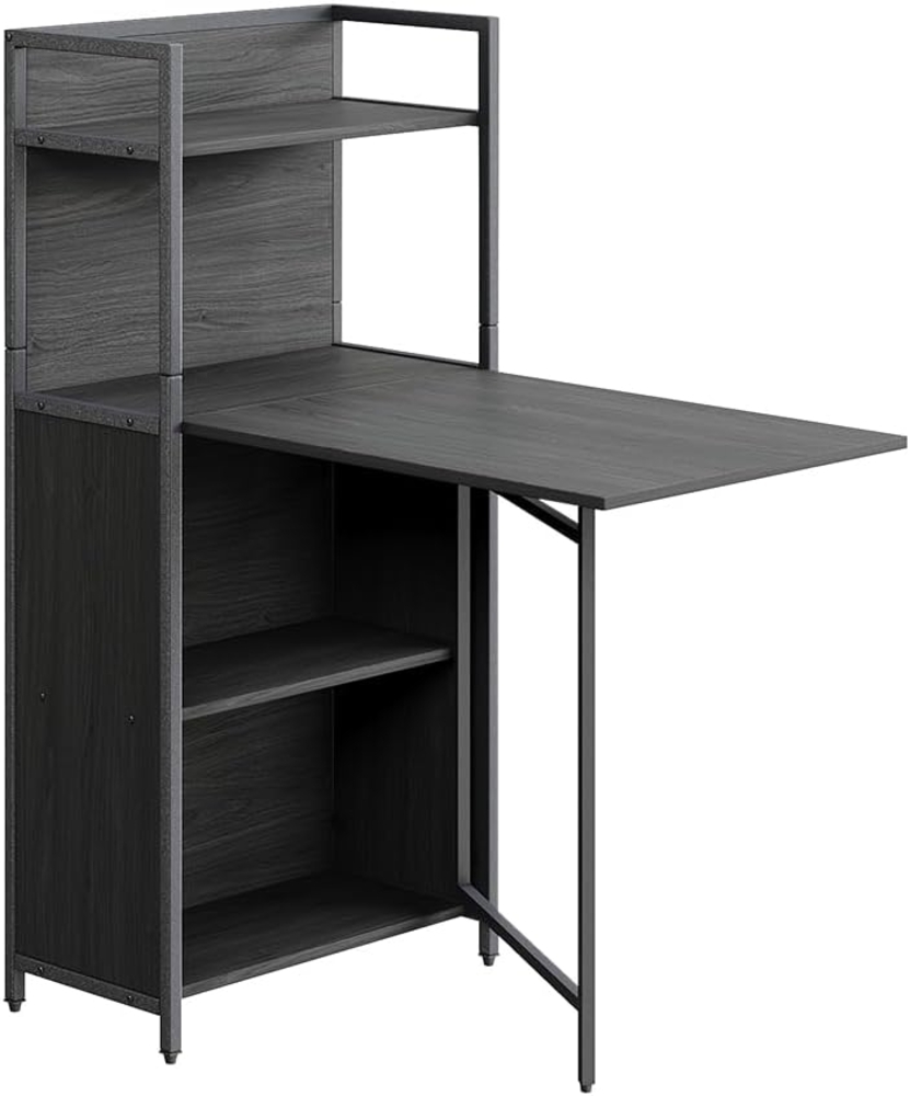 Der Vicco Esstisch Savio in Schwarz ist ein vielseitiges Möbelstück mit einer klappbaren Tischplatte, das sich ideal für Homeoffice und Essbereich eignet. Die integrierten Regale bieten praktischen Stauraum für Arbeitsutensilien und persönliche Gegenstände. Die stabile Metallkonstruktion und die Melaminharzbeschichtung sorgen für Langlebigkeit und ein modernes Design.