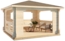 Der Tenekaubandus Gartenpavillon Modell Ibiza ist eine Gartenhütte aus Holz mit einem Wandaußenmaß von 400x400 cm und einer Gesamthöhe von ca. 288 cm. Die Grundfläche beträgt ca. 14,4 m² und die Dachfläche ca. 26 m². Die Wandstärke kann zwischen 40 oder 70 mm gewählt werden. Im Lieferumfang enthalten sind ein Massivholzdach, Montagematerial und Montageplan. Der Pavillon wird in natur (ohne Farbbehandlung) geliefert.