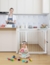 Das COMOMY Treppenschutzgitter bietet eine sichere Lösung für Ihr Zuhause. Mit einer Höhe von 76 cm und einer Breite von 75-110 cm ist es ideal für Türöffnungen, Flure und Treppen. Der doppelte Verriegelungsmechanismus sorgt für zusätzliche Sicherheit, während das automatische Schließen des Tores eine einfache Handhabung ermöglicht. Die robuste Konstruktion aus Stahl hält Stößen von bis zu 45 kg stand und gewährleistet eine langlebige Nutzung.
