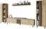 Die Wohnwand Hailea I vereint modernes Design mit praktischen Funktionen. Sie besteht aus zwei Regalen, einem TV-Lowboard und einem Wandregal, alles in der ansprechenden Farbgebung Artisan Eiche und Schwarzer Graphit. Die Möbel sind aus robusten Laminatplatten gefertigt und bieten ausreichend Stauraum für Ihr Wohnzimmer.