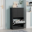 Stylisches Design Der Schrank überzeugt mit seinem modernen und einzigartigen Äußeren. Die vertikalen Streifenverzierungen auf der Front geben ihm eine dynamische Note, während die natürliche Holzoptik eine warme, einladende Atmosphäre schafft. Er passt nahtlos in verschiedene Einrichtungsstile, von modern bis skandinavisch. Einstellbarer Stauraum Dieser Schuhschrank verfügt über zwei verstellbare Türen, die reichlich Stauraum für Schuhe bieten. Bitte beachten Sie: Dieser Schuhschrank ist nicht für größere Schuhe geeignet und kann nur kleinere Schuhe aufbewahren. Leicht zu reinigen und zu pflegen Die Oberfläche des Schuhschranks ist glatt und weist keine hygienischen Toträume auf. Er kann durch tägliches Wischen mit einem feuchten Tuch gereinigt werden. Am Boden des Schuhschranks ist genügend Platz, damit der Kehrroboter ungehindert ein- und ausfahren kann und den Boden sauber hält. Langlebiges MaterialDer Schuhschrank ist aus hochwertigem Holz gefertigt, verschleißfest, schmutzabweisend und leicht zu reinigen. Er ist außerdem mit goldfarbenen Metallgriffen und -füßen ausgestattet, die nicht nur schön und haltbar sind, sondern auch die Stabilität erhöhen. Einfache Montage In der Anleitung steht, wie Sie den Schuhschrank zusammenbauen. Dort finden Sie auch die genauen Schritte. Sie benötigen weder professionelles Werkzeug noch Fachpersonal. Sie können die Montage selbst durchführen. Farbe: Dunkel braun/Schwarz/Natur/Hell braun Material: Holzwerkstoff, Metall Im Lieferumfang: 1 x Schuhschrank , 1 x Montageanleitung