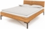 Einzelbett Seiba 2 in Sonderlänge 90 x 220 cm aus massiver, geölter Wildeiche. Das elegante Holzkopfteil mit senkrechtem Fischgrätmuster und die stabilen, eckigen Metallbeine aus schwarz matt lackiertem Stahl verleihen dem Bett einen besonderen Charme. Mit einer Höhe bis zur Oberkante des Bettrahmens von ca. 38 cm ist es ideal für große Menschen und bietet durchgehende Lamellen für optimalen Liegekomfort.